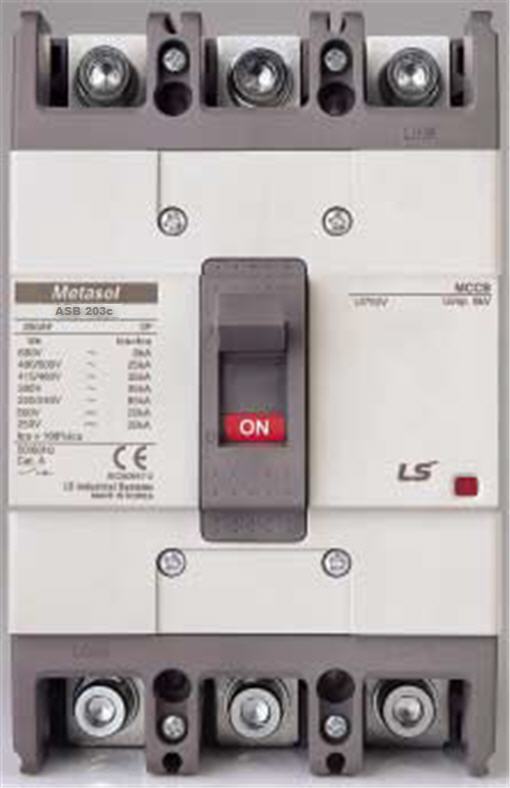 Metasol ABS203c là MCCB LS, dòng điện 125A, 150A, 175A, 200A, 225A, 250A; Icu 42kA.