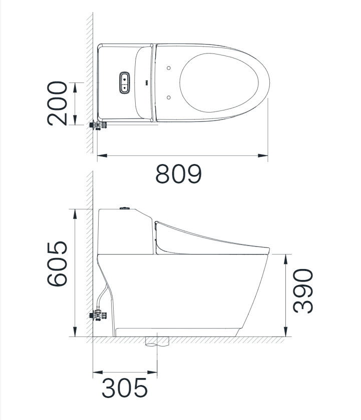 Kích thước bồn cầu (Depth-height-width): 372x605x809